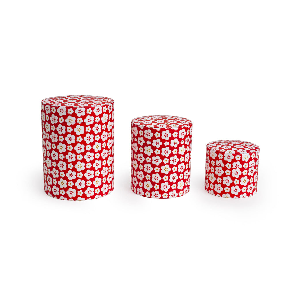 Ensemble de boîtes rouges avec motif d'arbres