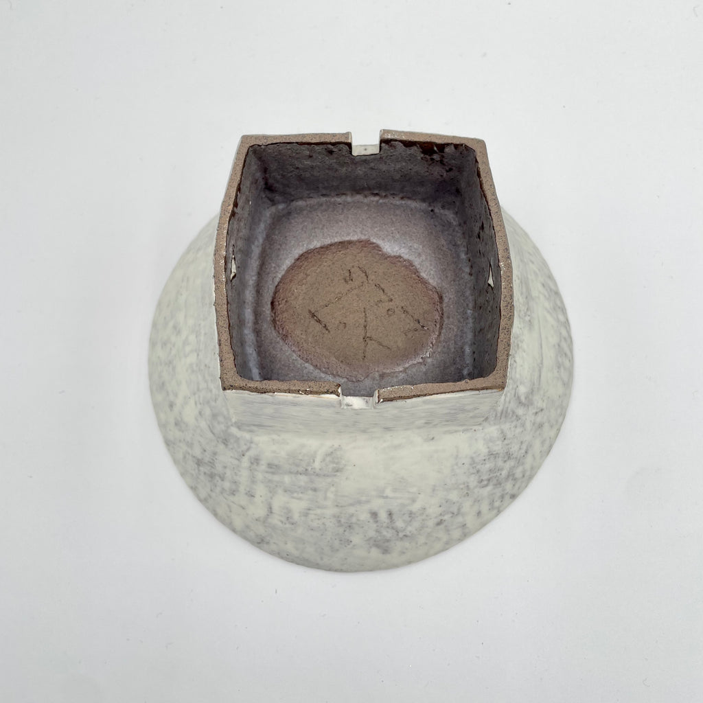Saladier rond sur un haut pied carré ajouré. L'artiste a employé la technique traditionnelle sud-coréenne du buncheong.
