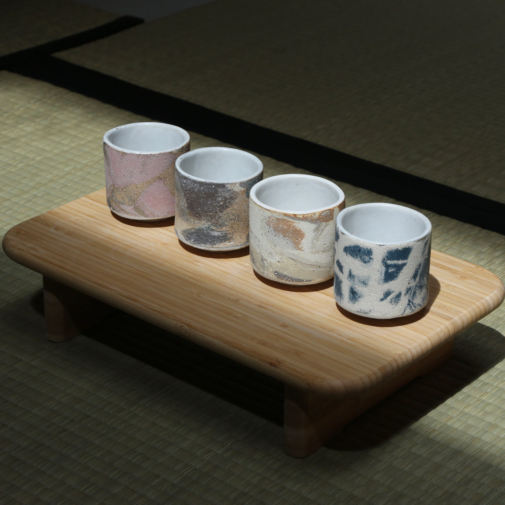 Tasse en grès et porcelaine faite à la plaque.