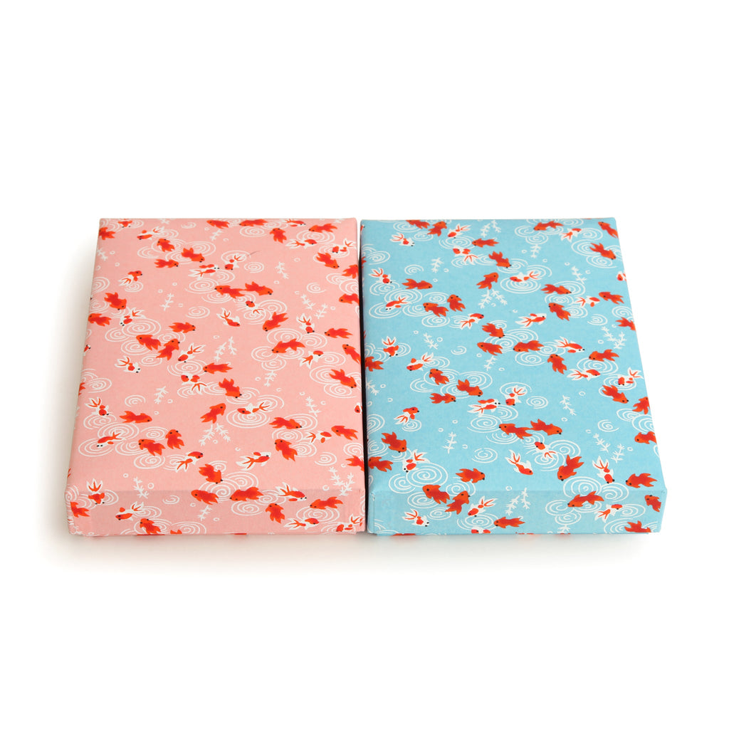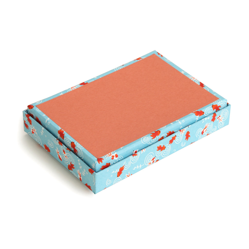 Cute Japanese traditional handmade paper paper box. These cute little boxes decorated with fish in red and gold colors will help you keep your small items organized.